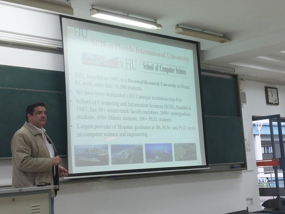 2017322日下午,应yl23455永利官网、软件学院邀请,佛罗里达国际大学yl23455永利官网的研究生导师Carlos Cabrera先生在教3-202进行了浅谈留美计算机专业教育与申请的出国教育专题讲座。学院软件工程系老师刘峥博士、科研秘书马玲玲及相关专业近100名同学参与了讲座。