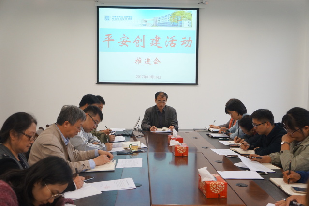 2017年10月16日下午,学院在学科楼327会议室召开平安创建工作推进会。副院长章韵、党委副书记何海洋出席会议,院办主任、系中心主任及全体辅导员参加本次会议。会议由党委书记季小健主持。