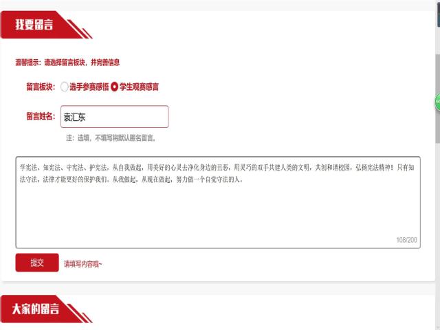 “我眼中的宪法”系列征文活动如火如荼地进行促进了学院学生对宪法认识和理解的加深,相信计软网安院的学子在今后的学习生活中更加注重法律安全意识的培养,将专业知识与宪法相结合,认真落实法治进校园的活动。