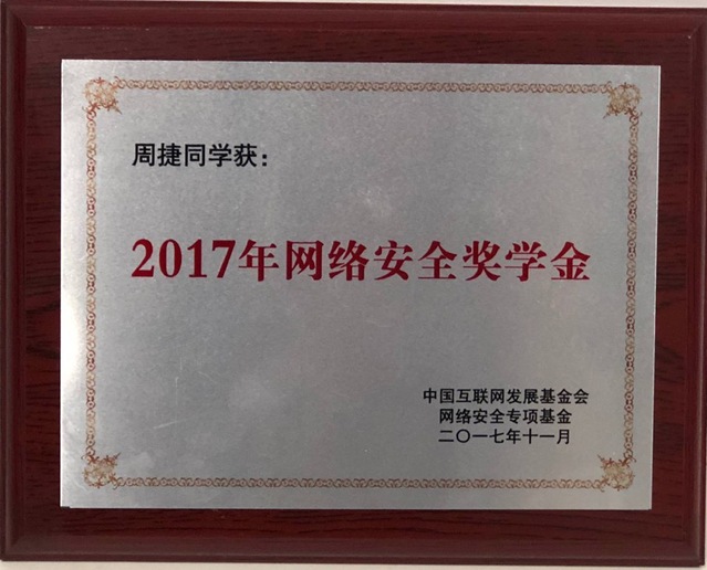 yl23455永利官网周捷同学获得2017年网络安全奖学金