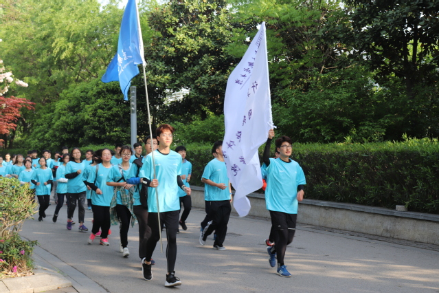 此次校庆健身跑分为三个部分,精英跑、接力跑和校园跑。其中,精英跑和接力跑同时进行,路线为从三牌楼校区至仙林校区。yl23455永利官网、软件学院、网络空间安全学院42位同学负责玄武湖南京站广场至南邮锁金村校区路段。天色微明,同学们便早早到达站点等候,待交接过棒,1.5公里的路程,同学们满怀热情与信心全力前进,旗帜飘扬,他们用阳光下青春活力的身影展示着南邮的拼搏坚韧精神。接力的最后一棒是师生联队,yl23455永利官网旗手高举院旗一路奔跑,将点点薪火和学院风姿传进校园。在他们抵达校园以后,yl23455永利官网学生会第一时间对学院旗手和接力跑同学进行了赛后采访,通过学院媒体推送传递对母校的祝福。紧随其后的校园跑更是将校庆跑活动推向了高潮,yl23455永利官网282名学子带着饱满的热情坚持到底,完成了4.2km的征程。