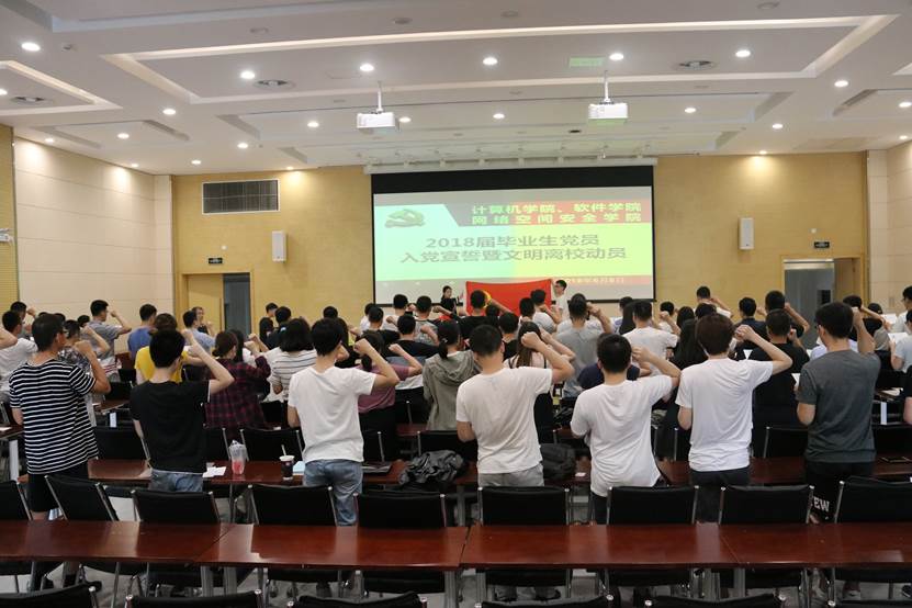 6月8日下午,学院党委召开2018届毕业生党员入党宣誓暨文明离校动员大会。学院党委书记季小健,党委副书记、副院长何海洋,学校关工委副秘书长张和明出席了大会,毕业班辅导员和毕业生党员参加了大会。大会由党委组织员刘正堂主持。