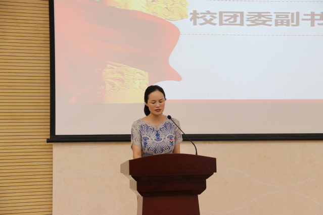 校团委副书记沈媛媛老师在致辞中表示共青团是党领导下的先进青年的群众组织,是党的助手与后备军,希望各位团代表发挥先锋模范作用,同时,她也对各位代表与青年朋友提出了几点希望与要求,一是要树立远大理想,坚持正确政治方向,进一步增强大局意识;二是希望大家争当实干先锋,学习掌握知识,练就过硬的本领;三是希望大家修炼品行,争当引领时代新风的文明先锋,作促进社会和谐的榜样。最后,她希望同学们都能培养勤学、慎思、明辨、笃行的精神,争做时代先锋。