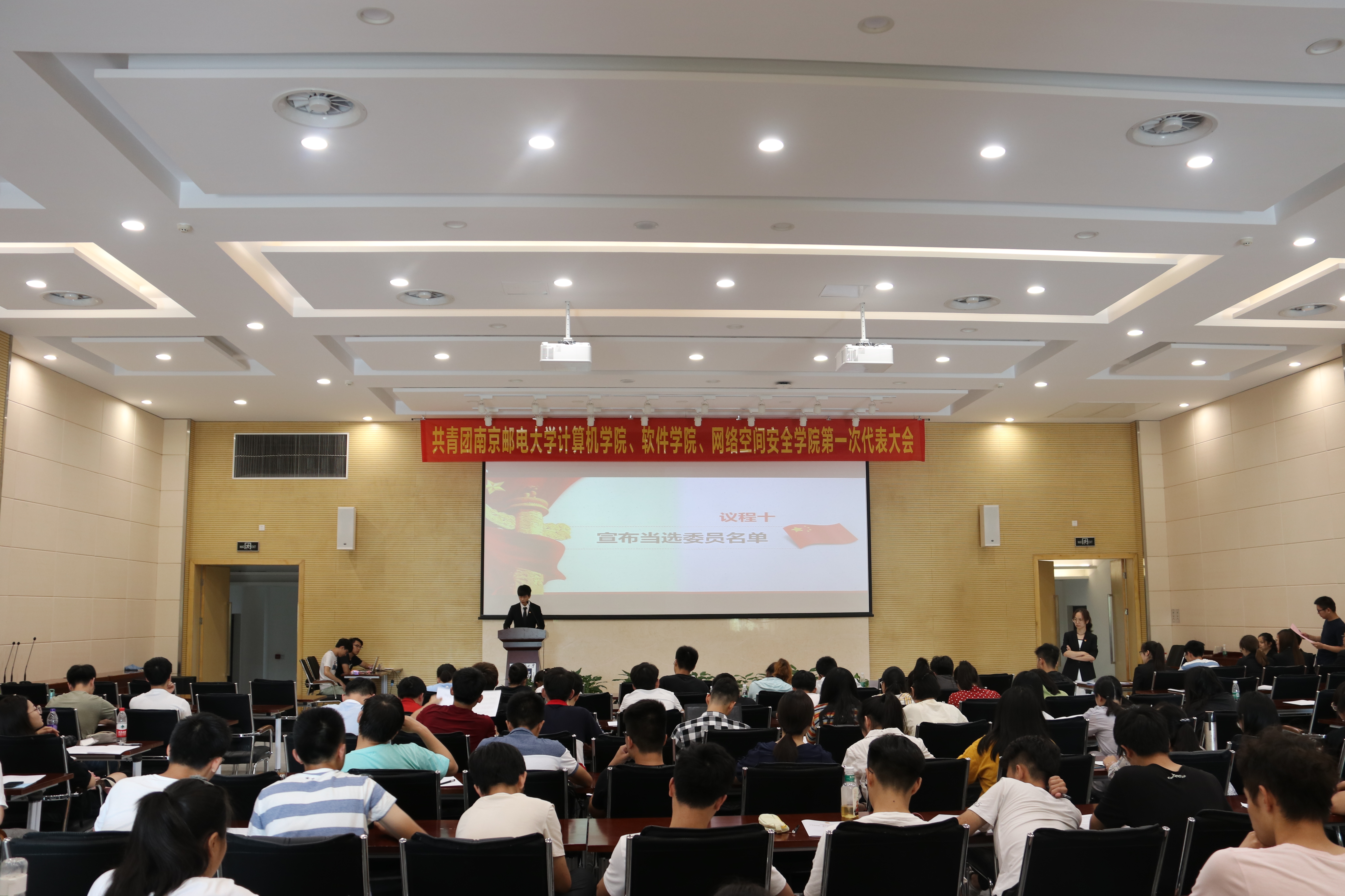 6月14日,共青团yl23455永利官网院、软件学院、网络空间安全学院第一次代表大会于计算机学科楼报告厅顺利召开。yl23455永利官网、软件学院、网络空间安全学院党委书记季小健老师、校团委副书记沈媛媛老师、校团组织宣传部部长赵伟老师、学院党委组织干事刘正堂老师、学院分团委书记葛丹老师、学院副教授、硕士生导师徐鹤老师、2015级辅导员马骞老师、2015级辅导员王波老师、2016级辅导员陈龙老师及85名团员代表出席了开幕式。开幕式由2017级辅导员缪云伟老师主持。