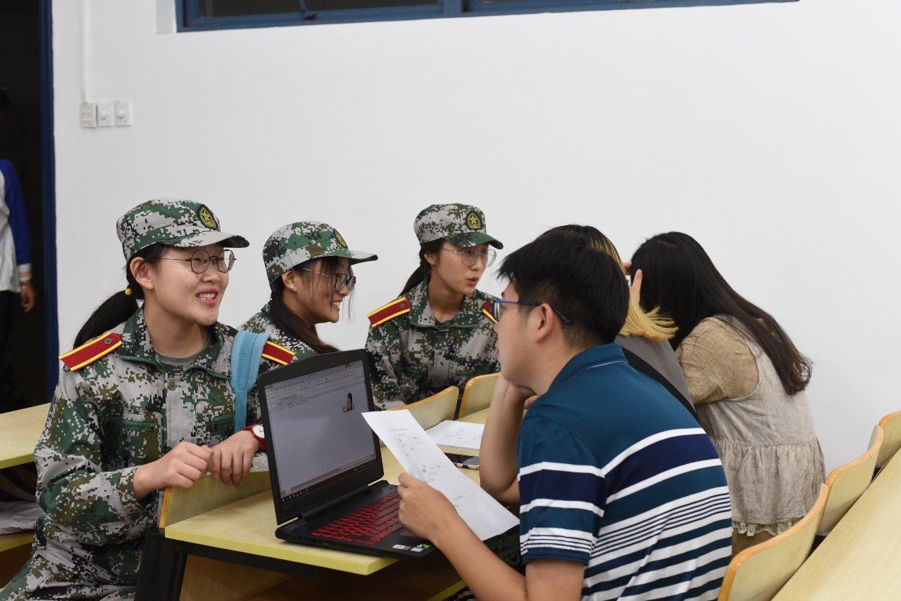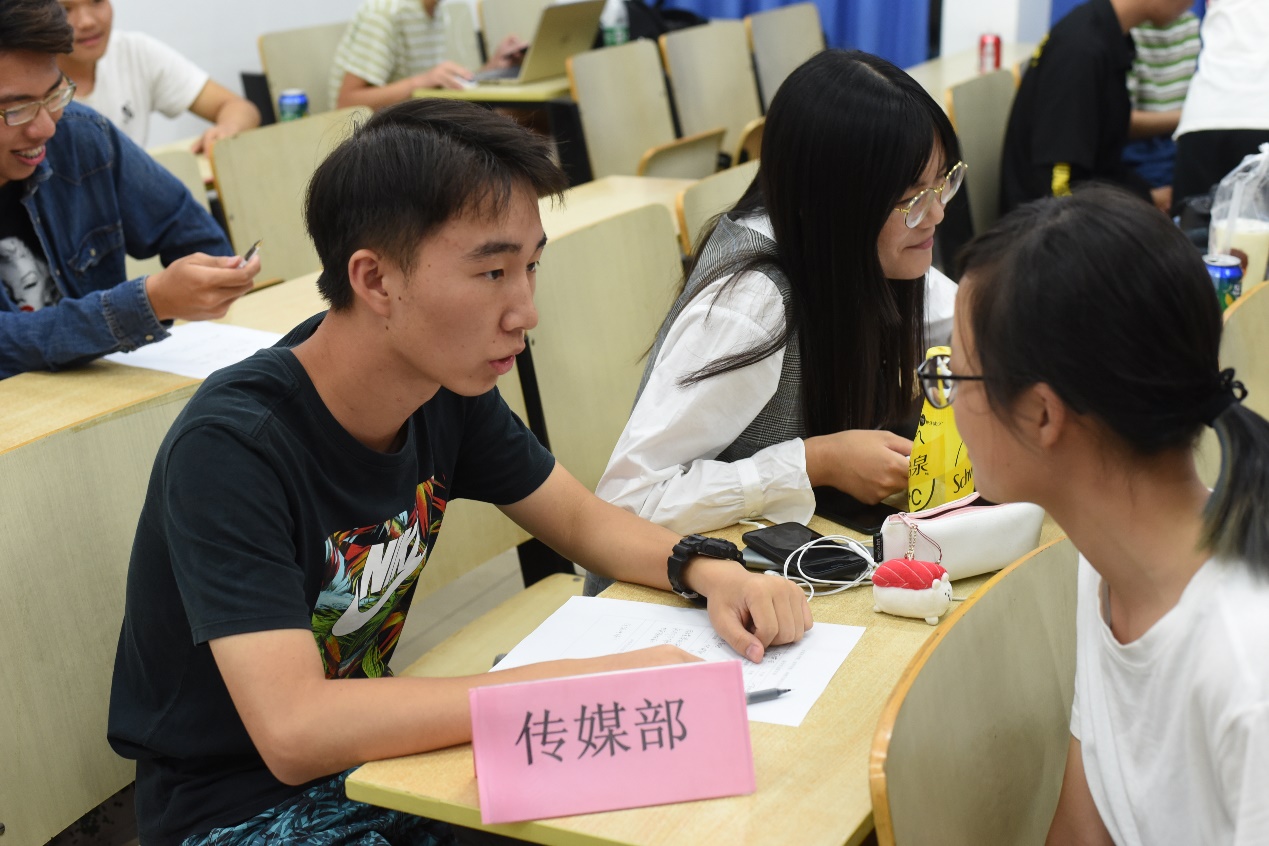 晚上六点半,招新面试准时开始。yl23455永利官网学生会的中干们早早来到招新会场,为迎接新生做好准备。新生们在结束一天的军训之后陆续到来,中干们在教室门口迎接新生,带领新生们前往准备室填写面试表格,并且细心地为新生们分发传单,悉心地为他们讲解各个部门的职能。