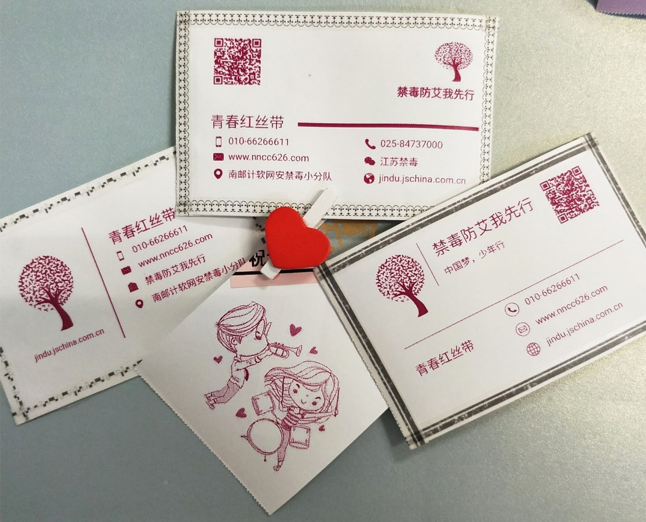 活动分天展开,7月16日,计软网安院禁毒小分队于学院会议室召开了出征动员大会。葛丹老师主持并介绍了本次活动的重要意义,并就活动安排及安全管理进行了部署。动员大会后,禁毒小分风队的成员们一起进行了活动的前期准备工作,包括了集思广益,对提高活动内容的丰富性、趣味性,调查问卷的制作与宣传传单的设计,布置装饰了禁毒防艾宣传名片的设计等进行了完善。筹备过程中,小队成员们集思广益,头脑设计与动手实践相互结配合,在愉快的氛围中,进一步提高了团队的默契度,创意制作了标志防艾的红丝带标志。充分完备的准备为之后两天活动的良好开展奠定了基础。