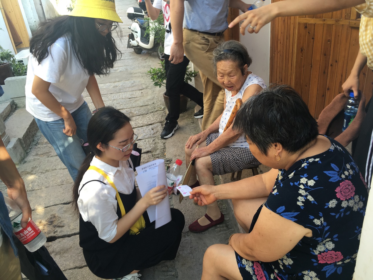 第二部分是宣传调研,实践团队分成四路小分队,在古街内开展实践调研,针对不同年龄层次的居民调查有关毒品的了解情况和对艾滋的基本认识。调查课题在居民中引起了极大的共鸣,其中,一位年过花甲的老奶奶更是痛斥了毒品的危害,一位毕业于南京艺术学院的的陶艺工作者也发表了自己对于艾滋病的认识,对禁毒防艾工作的宣传提出了自己合理的见解。