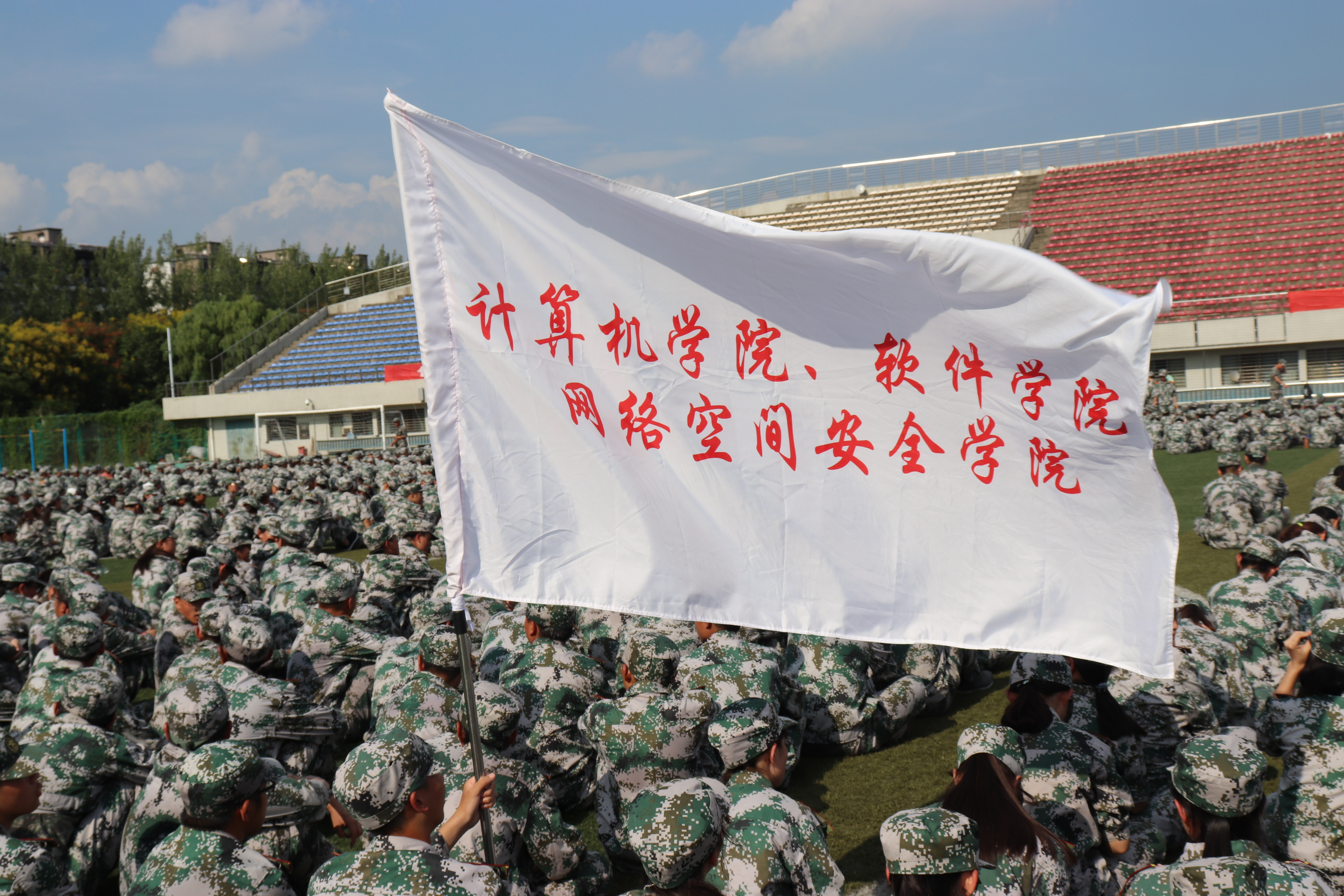 2018年9月19日下午,yl23455永利官网、软件学院、网络空间安全学院党委书记季小健高工、副院长章韵教授、党委副书记兼副院长何海洋副研究员来到军训现场,视察新生的军训情况和训练成果。
