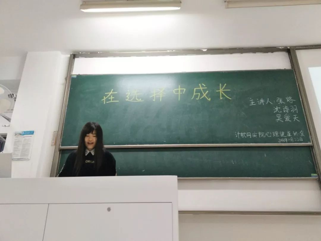 十月二十二日晚18:30,yl23455永利官网,软件学院,网络空间安全学院心理健康协会在教2-300举办了“在选择中成长”讲座,并有幸邀请到了张路学长,吴爱天学长以及沈诗羽学姐在此发表演讲。