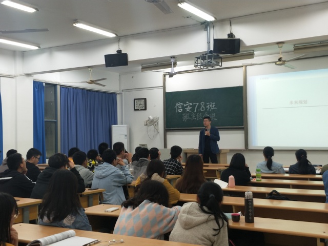 班会伊始,程海涛老师进行了自我介绍,给同学们分享了他在学习阶段主要的研究方向:人工智能和语义Web。同时,程老师与同学们分享了自己在大学时代的经历,生动地展示了一幅多彩绚丽的大学生活画卷,并通过将自己和周边同学的对比,让同学们感受到不一样的大学生活。