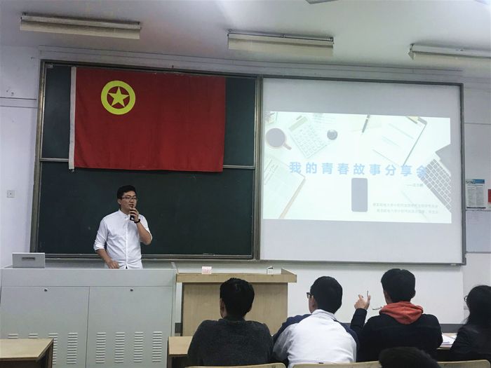 在主持人的简短介绍后,第一位主讲人周聪周学长开始了自己的经验分享。周学长重点为同学们阐述“享受”与“奋斗”的关系,指出“享受”应着重于社团活动、丰富课余生活、开拓眼界等方面;而“奋斗”则着重于认真学习,脚踏实地,打好基础,并将最好的大学生活状态总结为“保持优秀,用心享受”。第二位分享经验的是朱嵩学长,朱学长的讲话幽默风趣,他以人际关系作为切入点,指出大学就是一个小社会,并综合自己的亲身经历,阐述良好人际关系的重要性。与此同时,朱学长也不忘和同学们强调认真学习的重要性。接下来讲话的是吉万鹏学长,他通过PPT向我们展示了他的青春故事。吉学长指出,“效率是以正确的方式做事,而效能是做正确的事”,吉学长强调了学以致用的重要性,认为知识应当放到实践中运用。第四位主讲人肖亮学姐建议同学们做好时间规划,列出时间表,并向同学们介绍了艾宾浩斯记忆法。除此以外,肖学姐还从考研、工作、出国等几个方面给予同学们相应的建议。最后一位分享经验的是王进学长,他从“不要做”和“争取做”两个方面告诉同学们保持一颗上进心的重要性。王学长鼓励同学做自己想做的事情,拒绝半途而废,拒绝“三分钟热度”,应当在学习与生活中保持积极向上的态度。诙谐的语言中蕴藏着朴素的真理,同学们在掌声与笑声中获益匪浅。