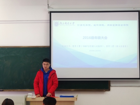 2019年12月10日中午12:00,yl23455永利官网、软件学院、网络空间安全学院2016级信息安全专业、软件工程(与NIIT合作嵌入式培养)专业、软件工程(嵌入式培养)专业开展了“辅导员面对面”年级大会,由辅导员杨健老师主持。