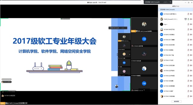 疫情防控期间,为大力弘扬爱国奋斗精神,进一步加强延时开学期间的学风建设,引导学生端正学习态度,确立考研深造的志向,4月3日,yl23455永利官网、软件学院网络空间安全学院2017级软件工程专业召开了线上考研动员和学风建设专场年级大会。本次会议由2017级辅导员吴忧老师主持,内容包括考研动员、学风建设、保研信息、心理健康、思政教育五个方面,2017级软件工程专业、软件工程(嵌入式培养)、软件工程(与NIIT合作嵌入式培养)、软件工程(分段培养)全体学生参加本次会议。