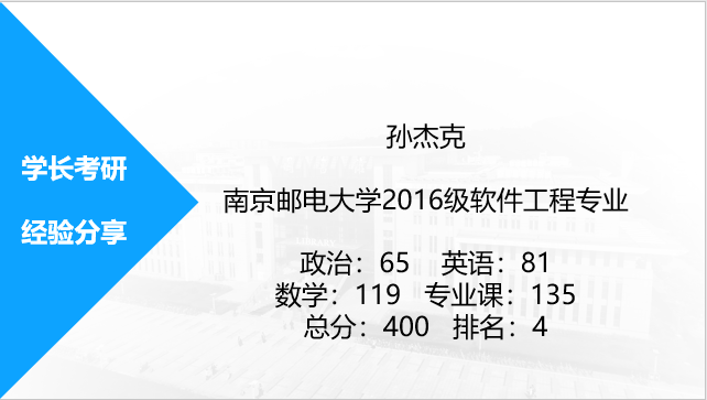 会议伊始,2016级优秀学长孙杰克同学结合自身经历,从报考目标、初试复习、时间规划等三个方面详细地分享了考研经验。吴忧老师通过列举时间节点、展示优秀备考笔记从考研意义、目标选择、计划安排、备考心态四个方面激励同学们在考研的道路上持之以恒,极大地帮助同学们树立了考研信心。