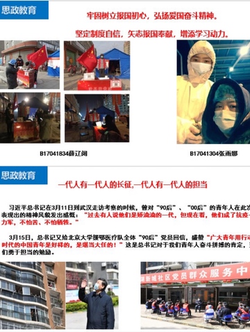 之后,根据2019年保研通知文件,吴忧老师系统地介绍了各类保研类型和相关条件;在团学活动方面,回顾了刚结束的“五四表彰”活动,鼓励同学们把握机会,按时积极完成“青年大学习”;在心理健康方面,建议同学们正确评估心理状态,利用好学校心理咨询中心的资源,并制定了未返校期间的线上长时间沟通机制。
