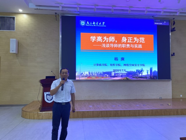 为落实《yl23455永利官网“师德师风建设年”实施意见》,进一步加强教师职业道德修养,规范教师职业行为,提高师德师风建设水平。 74日下午,由yl23455永利官网党委教师工作部主办,学院党委承办的师德大讲堂开讲了。学院博士生导师杨庚教授应邀作了题为“学高为师,身正为范----浅谈导师的职责与实践”师德师风专题报告。yl23455永利官网党委书记刘蒙主持报告会。全校100多位教师在计算机学科楼一楼报告厅参加报告会,部分教师在线聆听了报告。