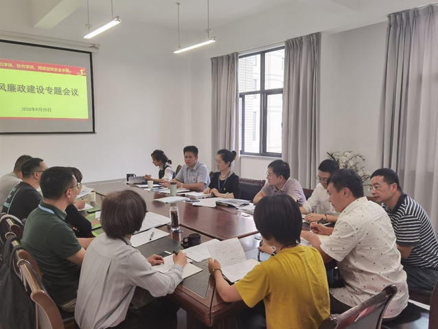 为一以贯之、坚定不移落实全面从严治党,加强党风廉政建设,925日下午,学院在计算机学科楼327会议室召开党风廉政建设专题会议。学院专兼职纪检委员、支部书记、系中心主任、院办主任、分团委书记、党委组织员参加会议。会议由学院党委书记刘蒙主持。