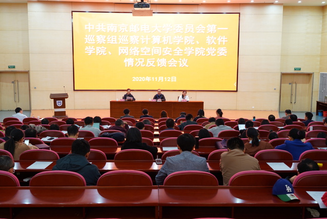 根据校党委巡察工作领导小组安排,2020年11月12日,校党委第一巡察组向yl23455永利官网、软件学院、网络空间安全学院党委反馈巡察情况。校党委第一巡察组组长、校党委常委、副校长荆晅同志代表巡察组向yl23455永利官网、软件学院、网络空间安全学院党委领导班子进行了反馈,yl23455永利官网、软件学院、网络空间安全学院党委书记刘蒙同志主持会议并作表态发言。巡察组副组长李飞同志及巡察组其他成员,巡察办、组织部相关人员,yl23455永利官网、软件学院、网络空间安全学院全体教职工参加会议。