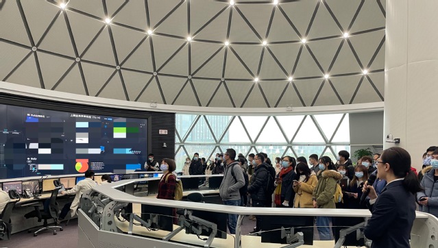 在实验室工作人员的带领下,全体师生先后参观了江苏省移动公司网络管理中心、“大连接”创新体验中心、“大连接”联合创新实验室,接触到了一线5G应用场景,加深了对理论知识在生产生活中实际运用的认知。穹顶式的网络管理中心,硕大的环形屏幕让师生感受到日常生活中移动通信技术背后的强大技术力量。