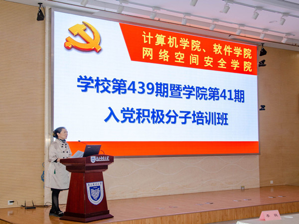 2021年5月12日中午,学院党委在计算机学科楼一楼报告厅举行学校第439期暨学院第41期入党积极分子培训班开班典礼。学院党委书记刘蒙出席典礼,并讲授了以“坚定理想信念,端正入党动机”为主题的党课,112名入党积极分子参加了本次培训。