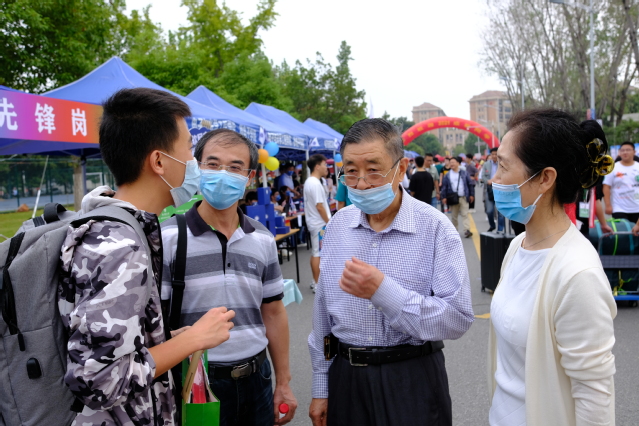 两位老同志与学生党员志愿者们一起向新同学们分发宣传材料,与新同学热情交流,向他们介绍学校情况,为他们解答办理入学手续的各种问题,鼓励同学们要做好职业规划和学习计划,尽快适应大学生活,不浪费点滴时间,好好学习,天天向上,努力取得丰硕成果;积极锻炼身体,参加体育活动,做到德、智、体、美、劳全面发展;积极要求进步,向党组织靠拢,做一名有使命、有责任、有担当的新时代大学生。