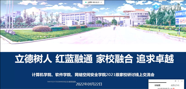 为营造学校与家庭协同育人的良好氛围,使2021级学生家长能全面了解孩子在校的学习情况及行为表现,更透彻地理解孩子所学专业未来的发展前景,2022年1月22日,yl23455永利官网、软件学院、网络空间安全学院组织召开了2021级家校研讨线上交流会暨“言职邮你”专业规划讲座,2021级部分学生家长参加了会议。