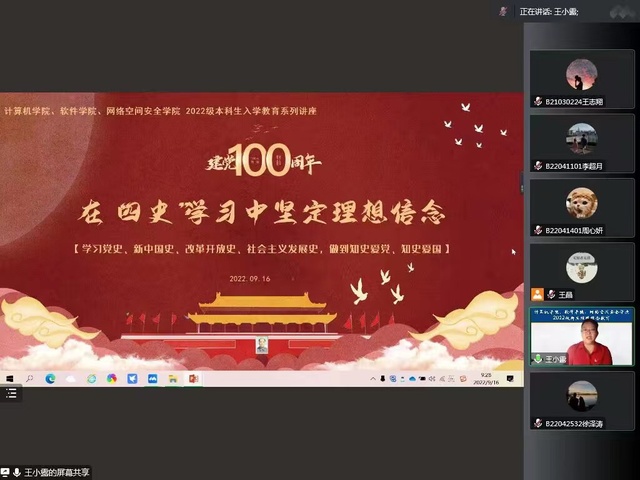 为切实做好2022级新生入学教育工作,落实立德树人根本任务,帮助新生更好地融入新的学习和生活环境,进一步教育引导新生坚定理想信念、树立远大理想、增强爱国情怀,在人生的新起点上扣好第一粒扣子,9月16日上午,yl23455永利官网党委副书记、副院长王小露讲授题为《在“四史”学习中坚定理想信念》专题党课,2022级全体新生通过腾讯会议线上参加。会议由辅导员王晶老师主持。