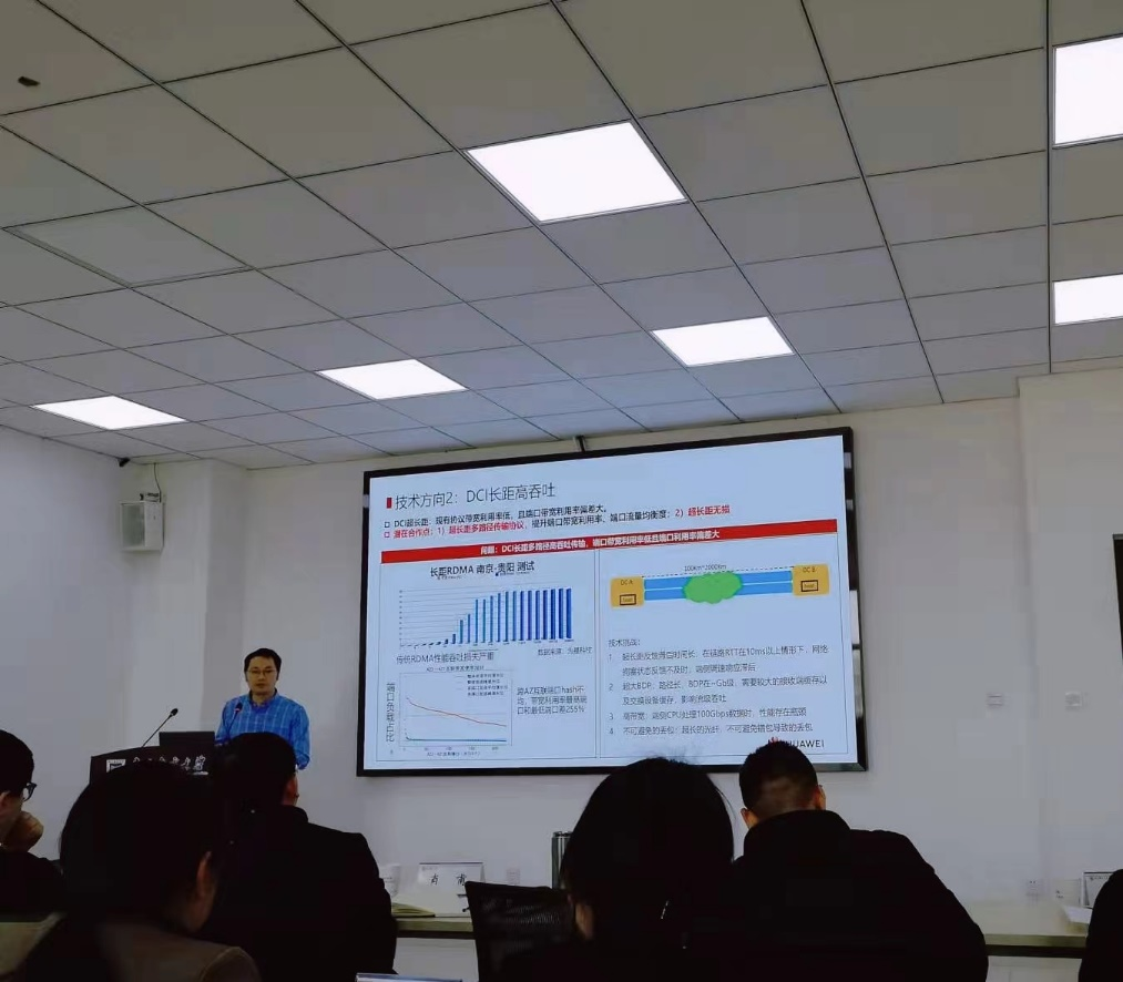 专家报告会由学院韩磊教授主持。华为数据中心网络首席研究员郑晓龙博士、园区网络副主任陈昊博士、计算存储网络负责人王伟光博士分别作了题为《华为数据中心网络规划与技术》《华为园区网络技术规划与技术》和《华为云与计算网络规划与技术》的报告。紫金山天文台百人计划李国亮研究员、张松波博士分别作了题为《空间站望远镜的相关计算》和《时域巡天的自动化与大数据挑战》的报告。学院肖甫教授、樊卫北副教授、王俊昌副教授、何昕博士也分别作了题为《长距无损技术创新思路研究》《效率优先的网络架构设计思考》《端网协同的存储网络技术创新》和《数据中心网络可靠性设计》的报告。吴雪峰副台长对研讨会做了总结发言。