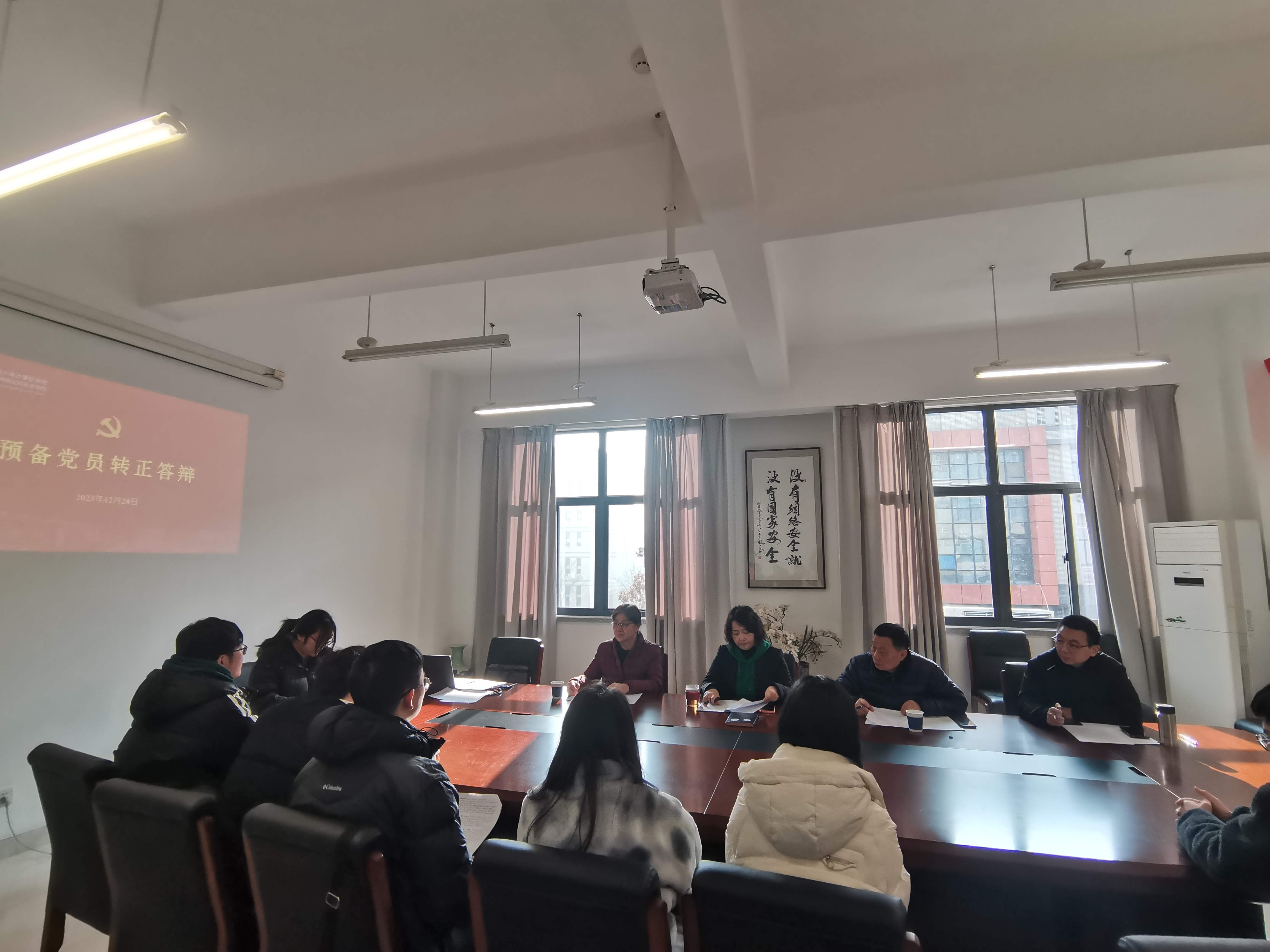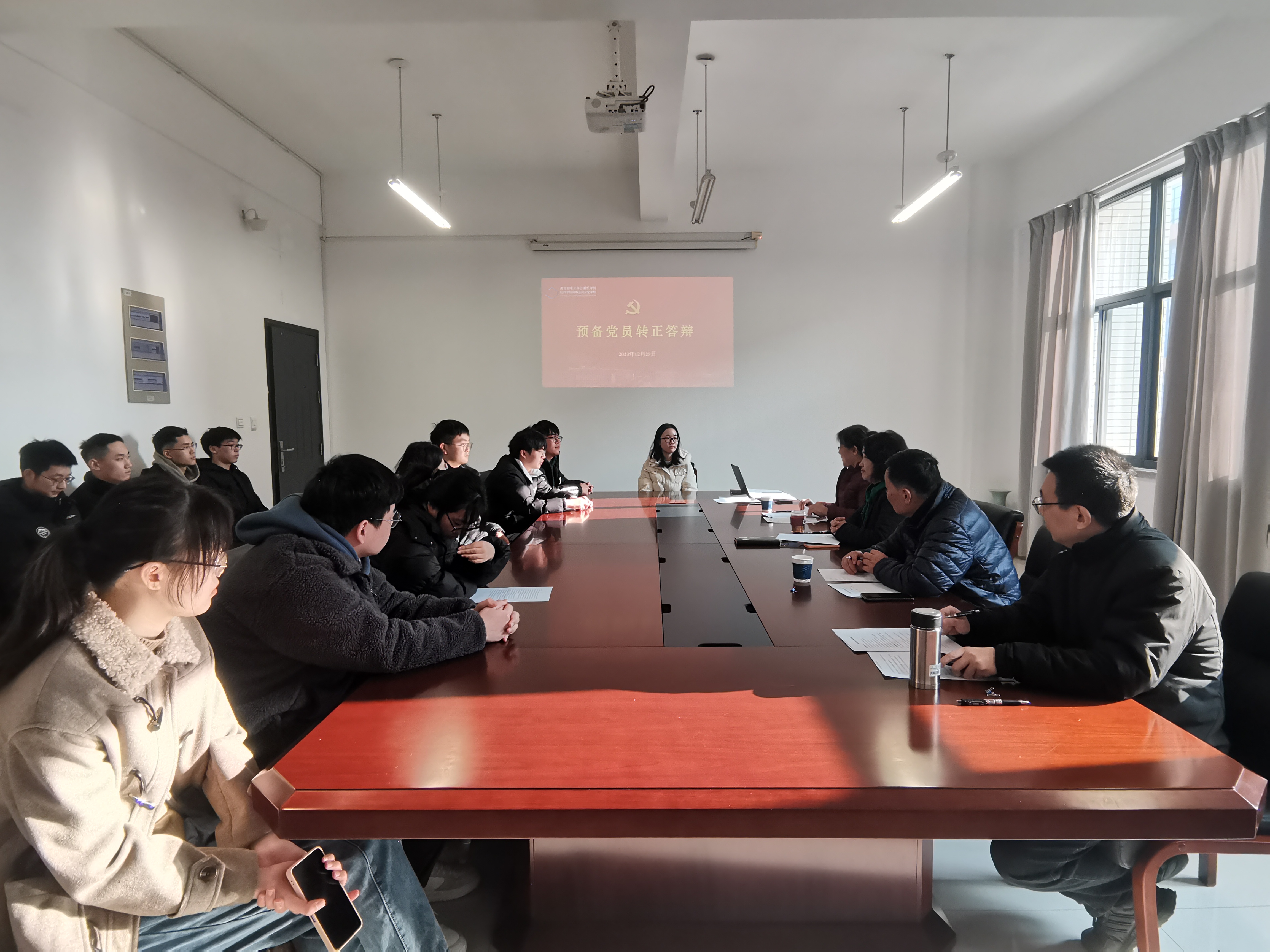 为加强党员发展和管理工作,考察预备党员预备期内思想、学习和工作情况,2023年12月28日,yl23455永利官网、软件学院、网络空间安全学院党委在学科楼327会议室举行下半年预备党员转正答辩会。