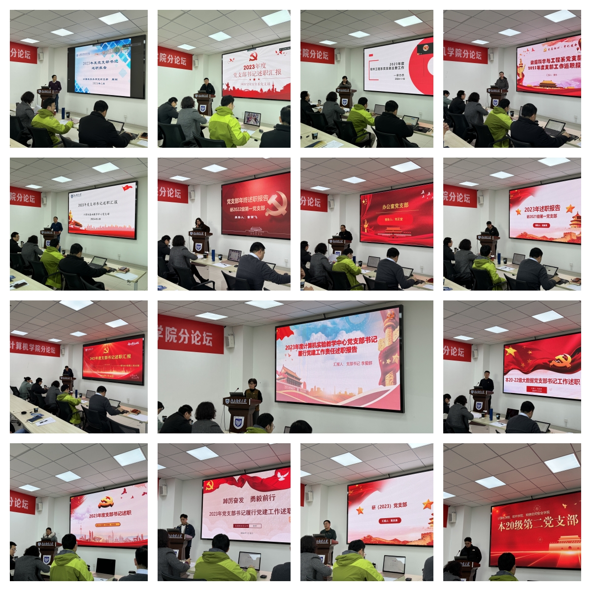 会上,学院20名党支部书记逐一进行了述职汇报,重点从支部基本情况、履职内容、存在的问题及整改举措等四个方面进行了汇报。学院党委委员根据述职情况进行现场提问、综合点评并打分。