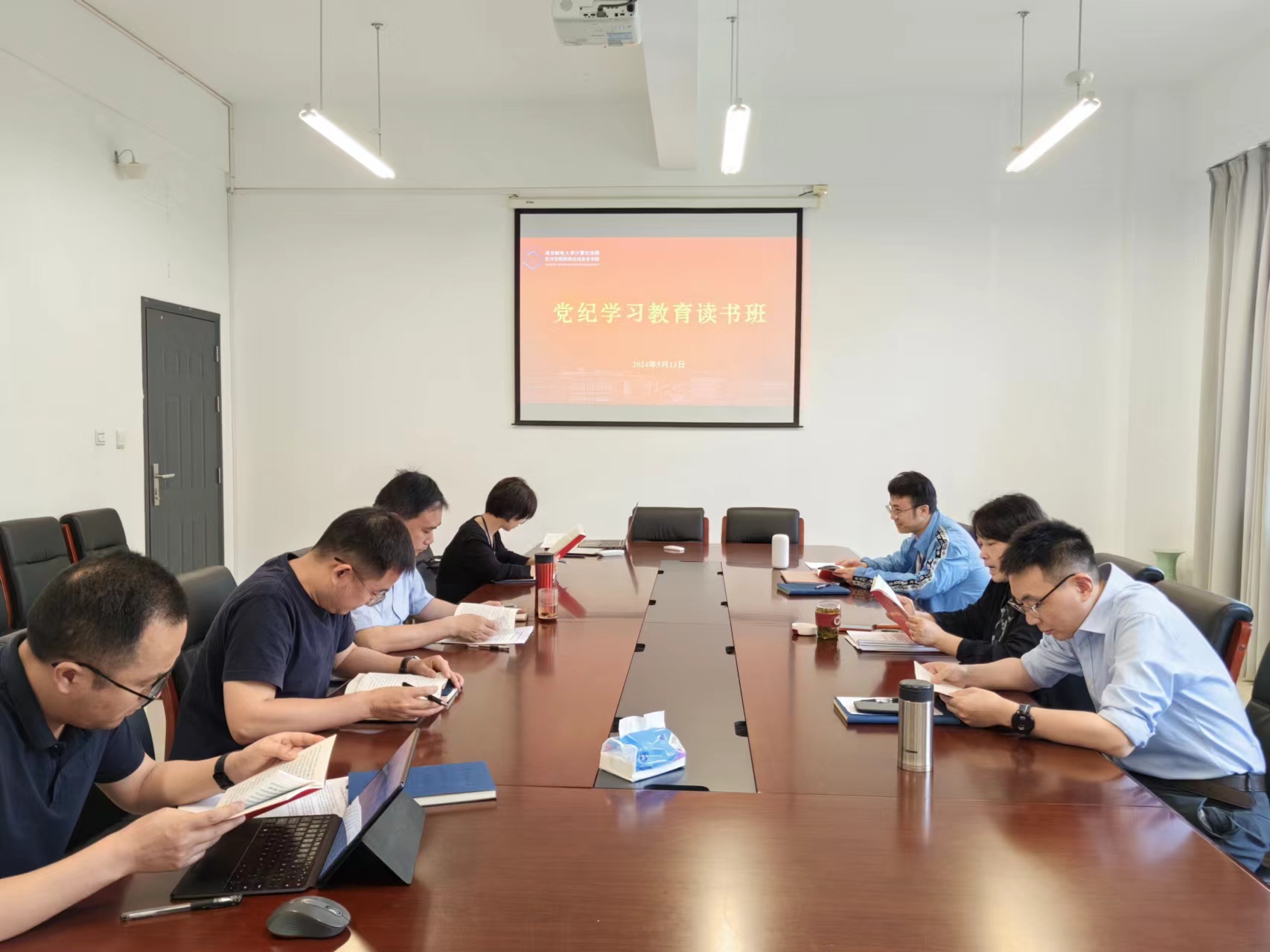 5月13日下午,学院党委理论学习中心组全体成员在在学科楼327会议室集中学习研讨《条例》第六章、第七章内容,学院党委书记、党委理论学习中心组组长尹志丽主持并作总结发言。