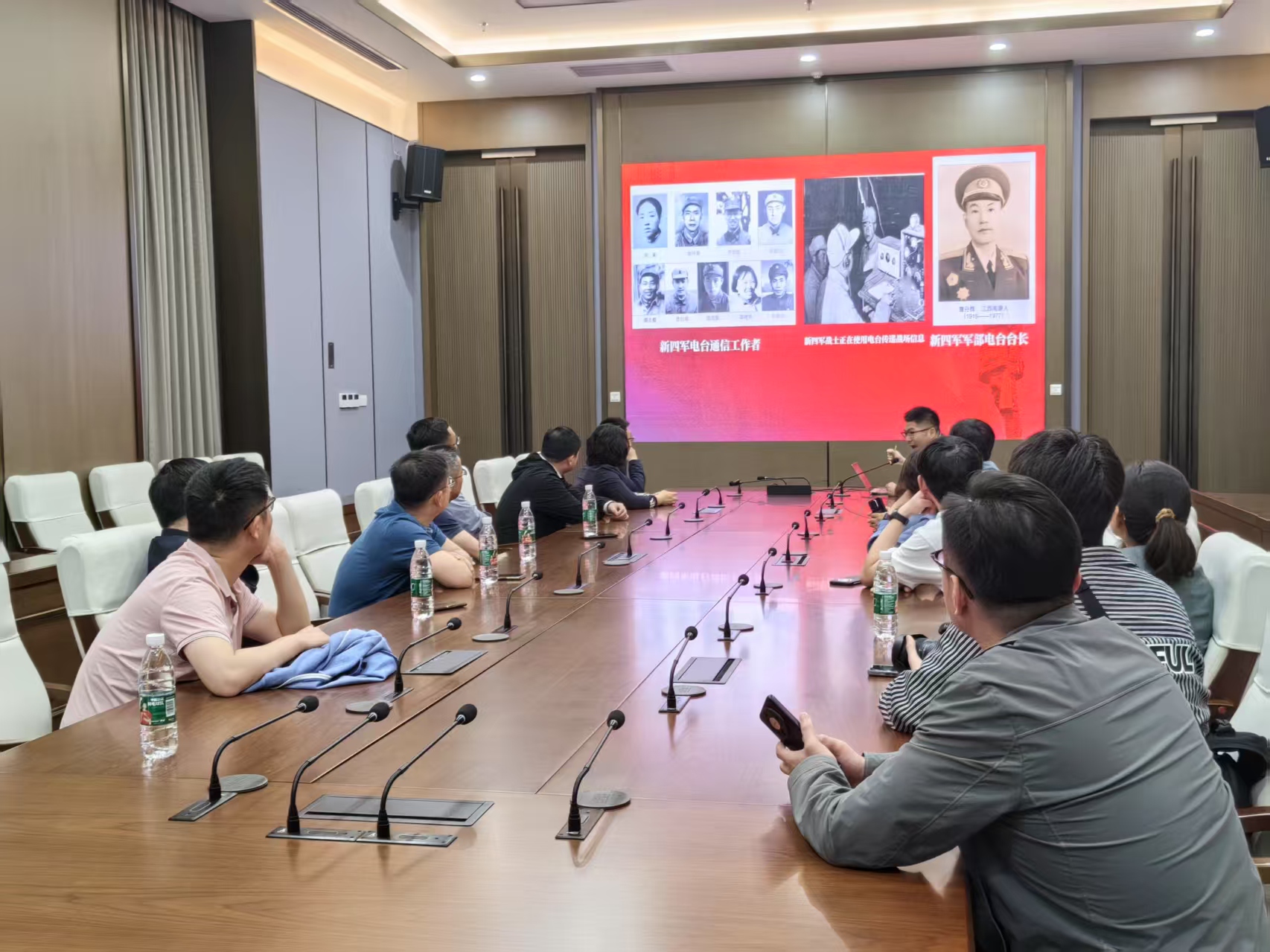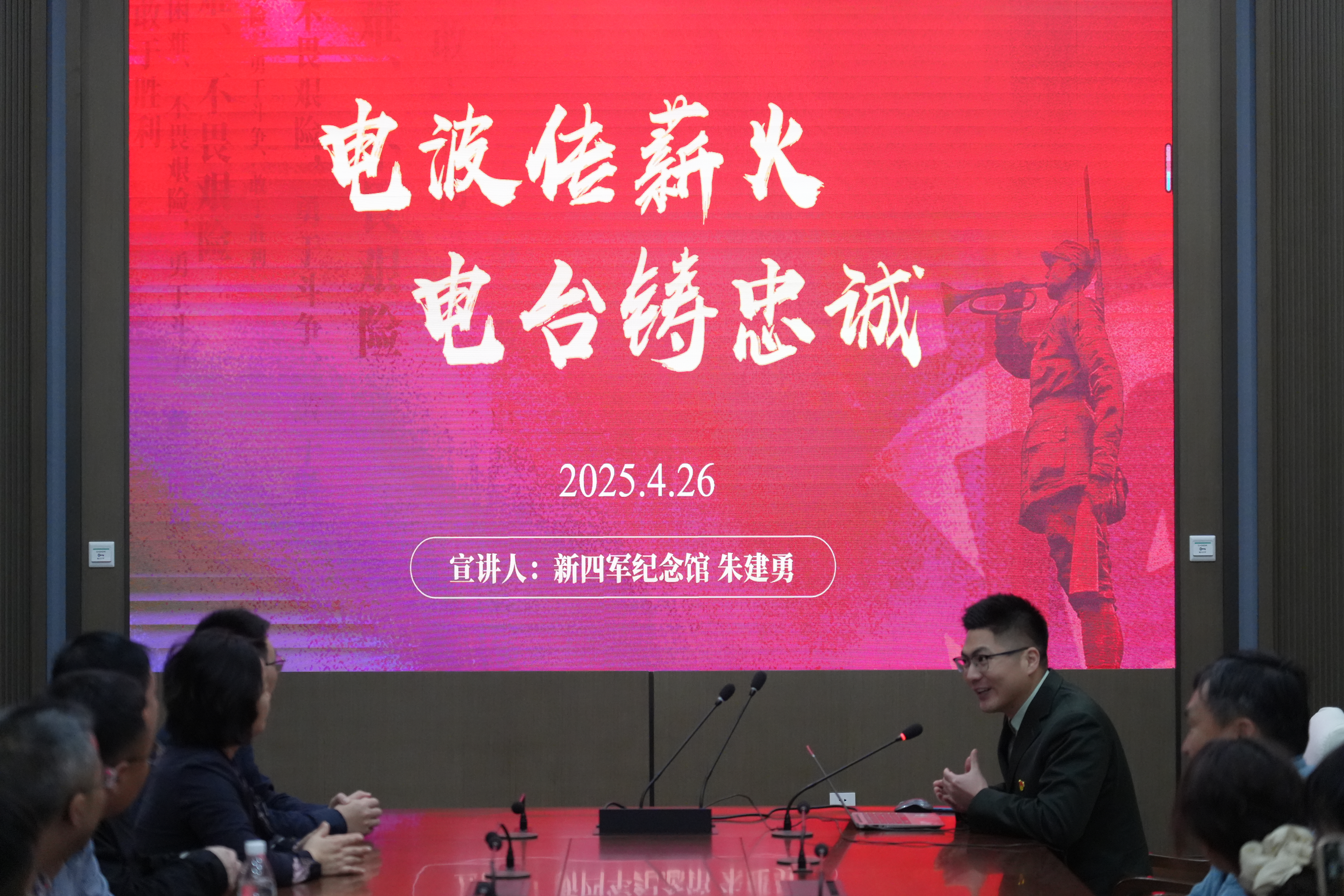 在《电波传薪火 电台铸忠诚》专题微党课中,主讲人以“永不消逝的电波”为线索,讲述了新四军在敌后战场依靠无线电技术开展情报斗争、传递红色火种的英勇故事,展现了共产党人“革命理想高于天”的坚定信念。中心组成员认真聆听,深刻体会革命年代党员干部“一手拿枪、一手握笔”的智慧与担当。