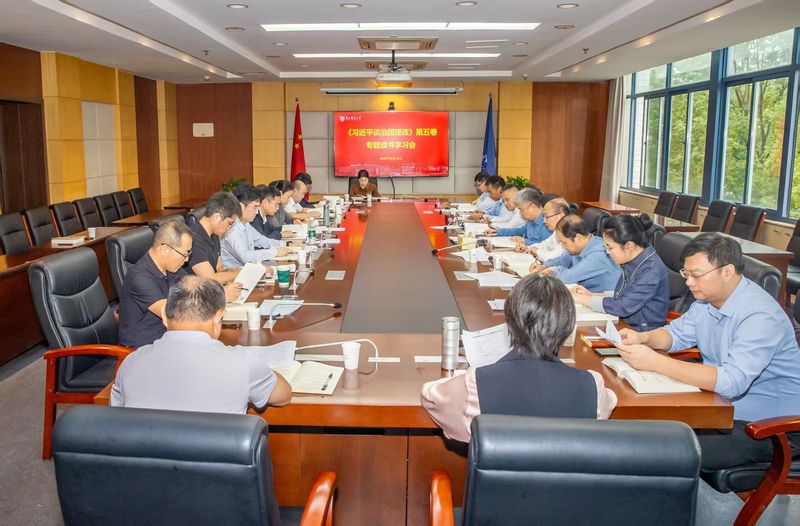 校党委书记、校党委理论学习中心组组长郭宇锋主持学习会。会上聚焦《习近平谈治国理政》第五卷,深刻学习以习近平同志为核心的党中央统筹国内国际两个大局,全面推动建设社会主义现代化国家的生动实践。校领导郭宇锋、蒋国平、王友国、周和林、肖甫、刘青山、谢平、周亮以及相关部门负责同志领学。